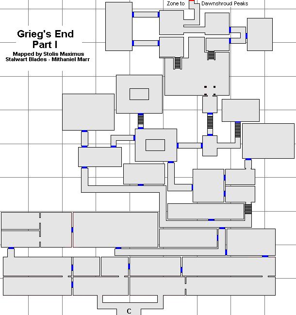 Grieg's End is the haunted remains of the castle built by Grieg, an ancient geomancer that provided the ability for the Combine Empire to travel to the moon of Luclin. After finding out that they were permanently trapped on the moon, many of the Combine turned against him and drove him to this place. His attempts to discover a route back to Norrath were thwarted by Luclin herself, who drove him mad before he could discover the way.